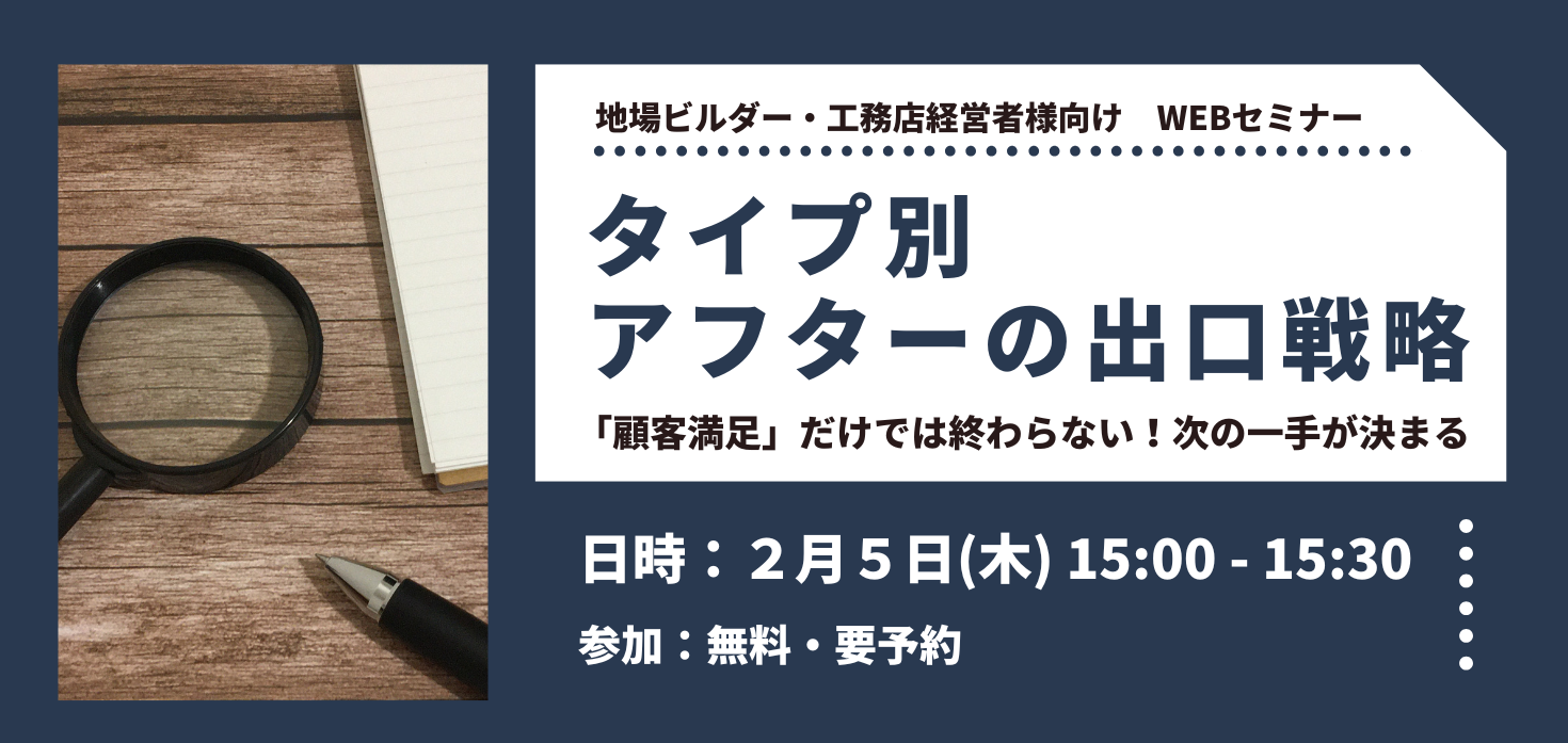 2月5日(木)顧客満足だけでは終わらない!次の一手が決まる「タイプ別アフターの出口戦略」WEBセミナー開催